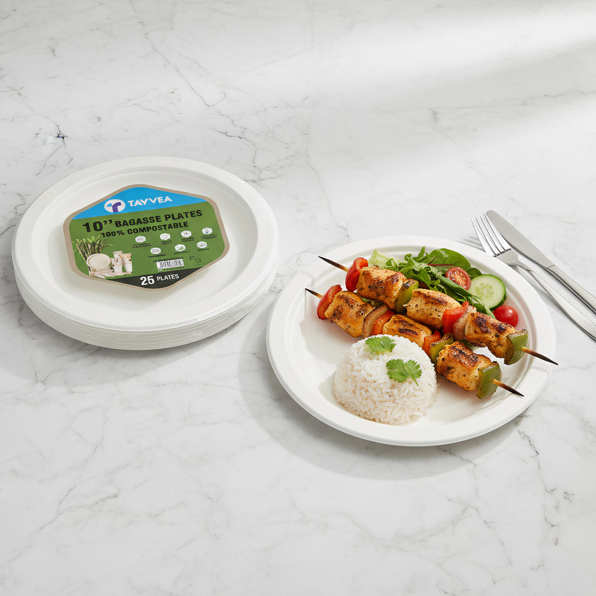 Our biodegradable tableware helps reduce environmental impact.